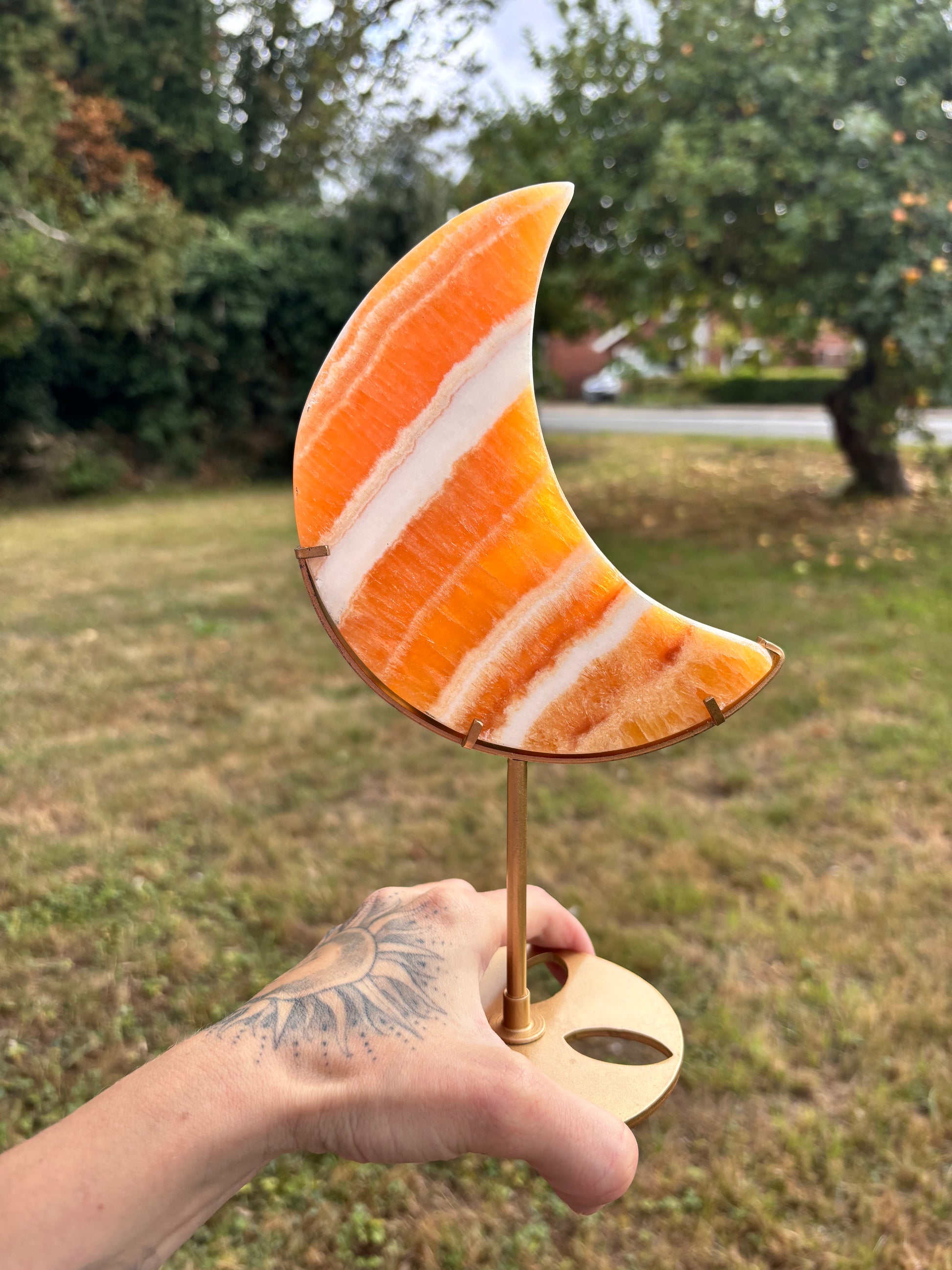 yellow Calcite moon on stand